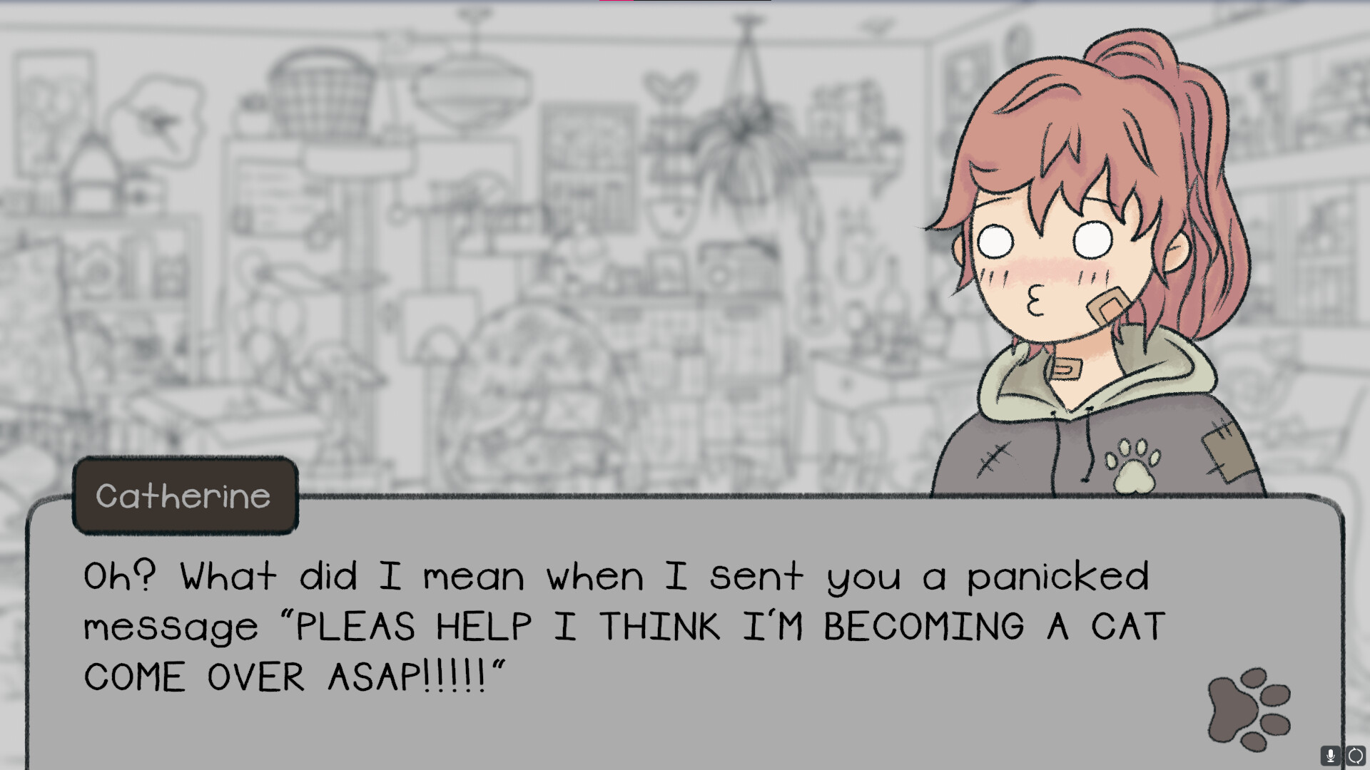 You get a message from your friend Catherine—turns out she's caught a strange virus that's turning her into a cat! (Don't worry, she'll land on her feet, I promise.)