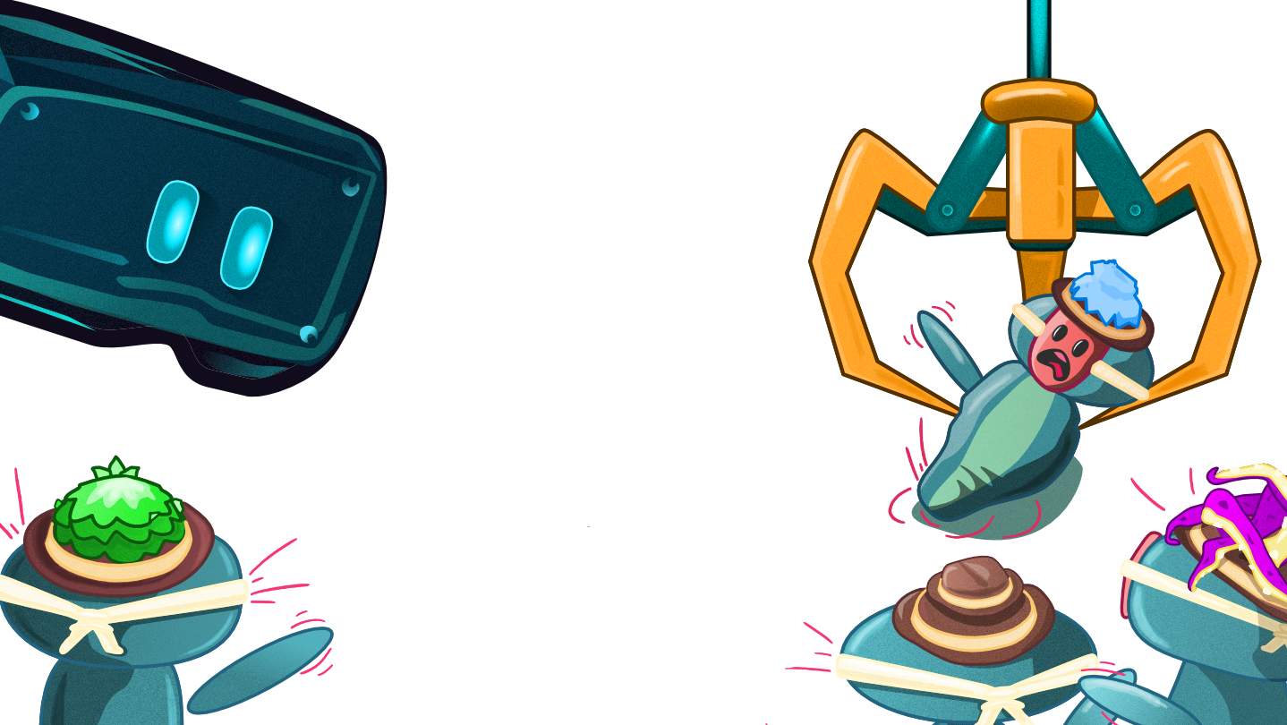 Im lokalen Multiplayer Grab Your Friends steuert eine Person in VR die Kralle einer Claw Machine, während Freunde auf Handys im Inneren flüchten, sich verstecken und mit besonderen Hüten für Chaos sorgen. Kurze, spannende Runden- perfekt für jeden Abend.