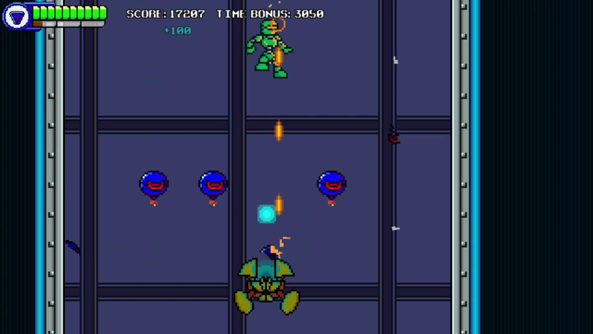 • The Super Flip allows you to flip gravity and transforms you into a fire ball at the same time. Deals a good amount of damage to your enemies and also destroy their projectiles. It takes a third of your power bar.