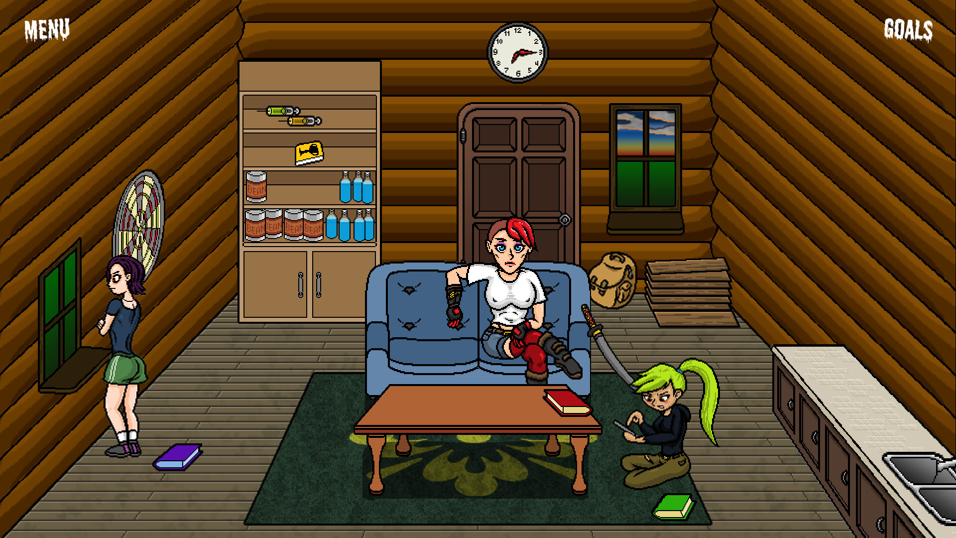 This is a point and click adventure/resource management game with lewd themes. You control a group of girls during the collapse of society at the hands of an apocalyptic zombie virus.