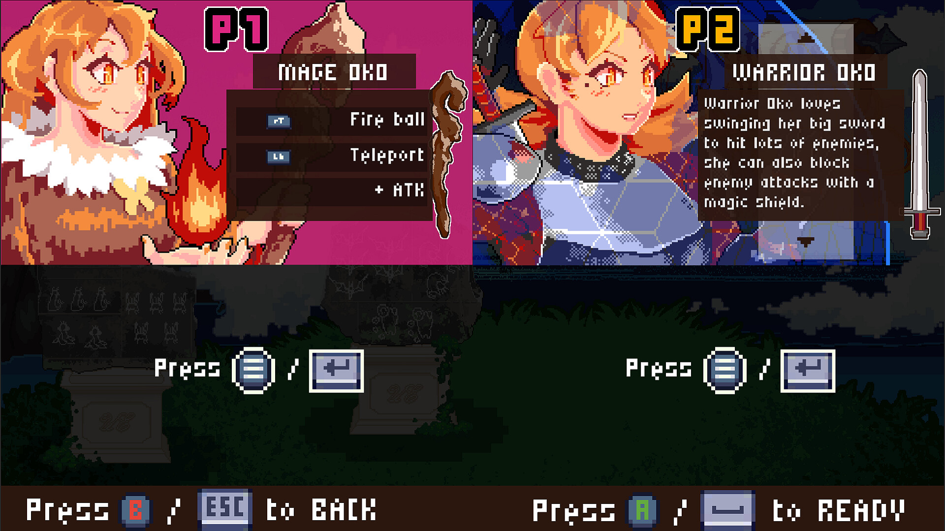 Oko's Quest Party Mode is a 2-4 player local multiplayer battle that features many aspects from the story mode! Do you like bite sized RPG game experiences? Well then grab your friends, it's Party Mode~!