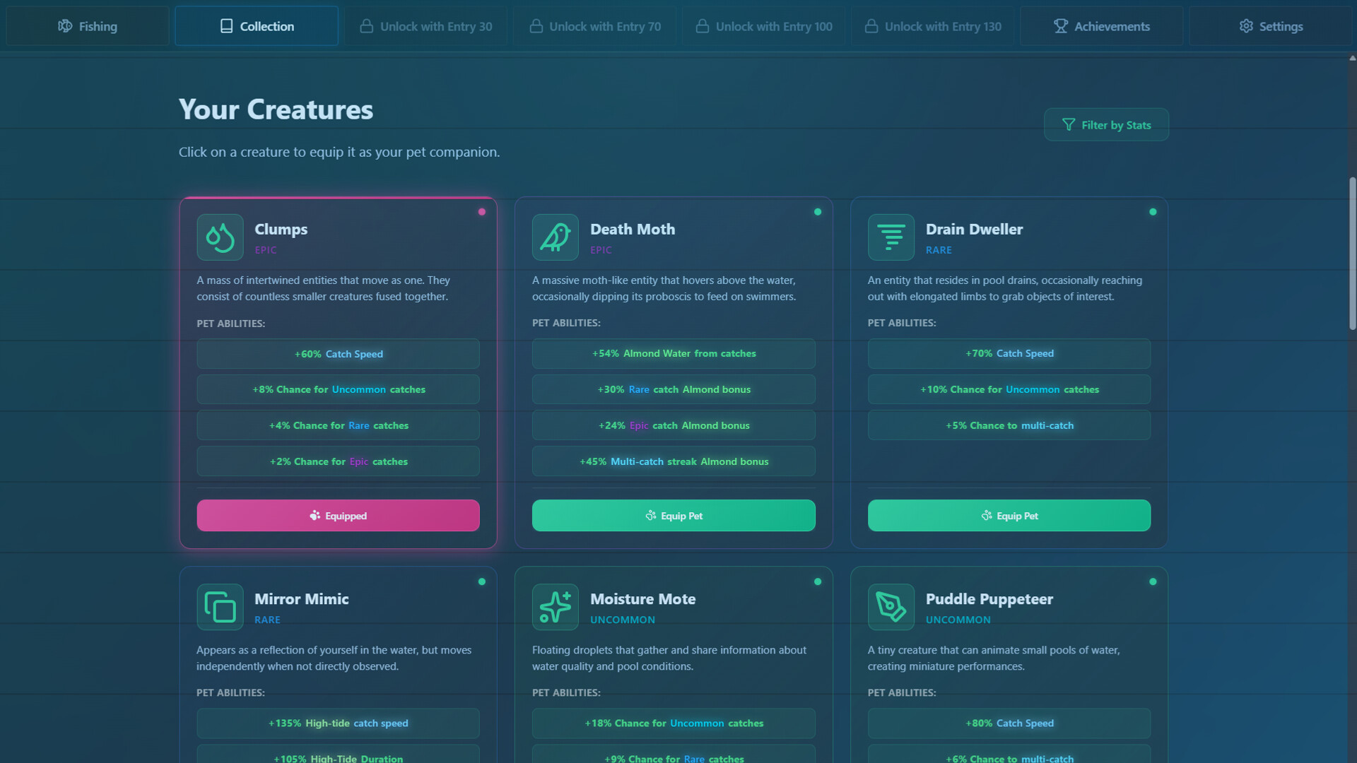 COLLECT PETS - Document your catches in a detailed collection system. Choose them as your pet and companions to progress even faster through the pools.