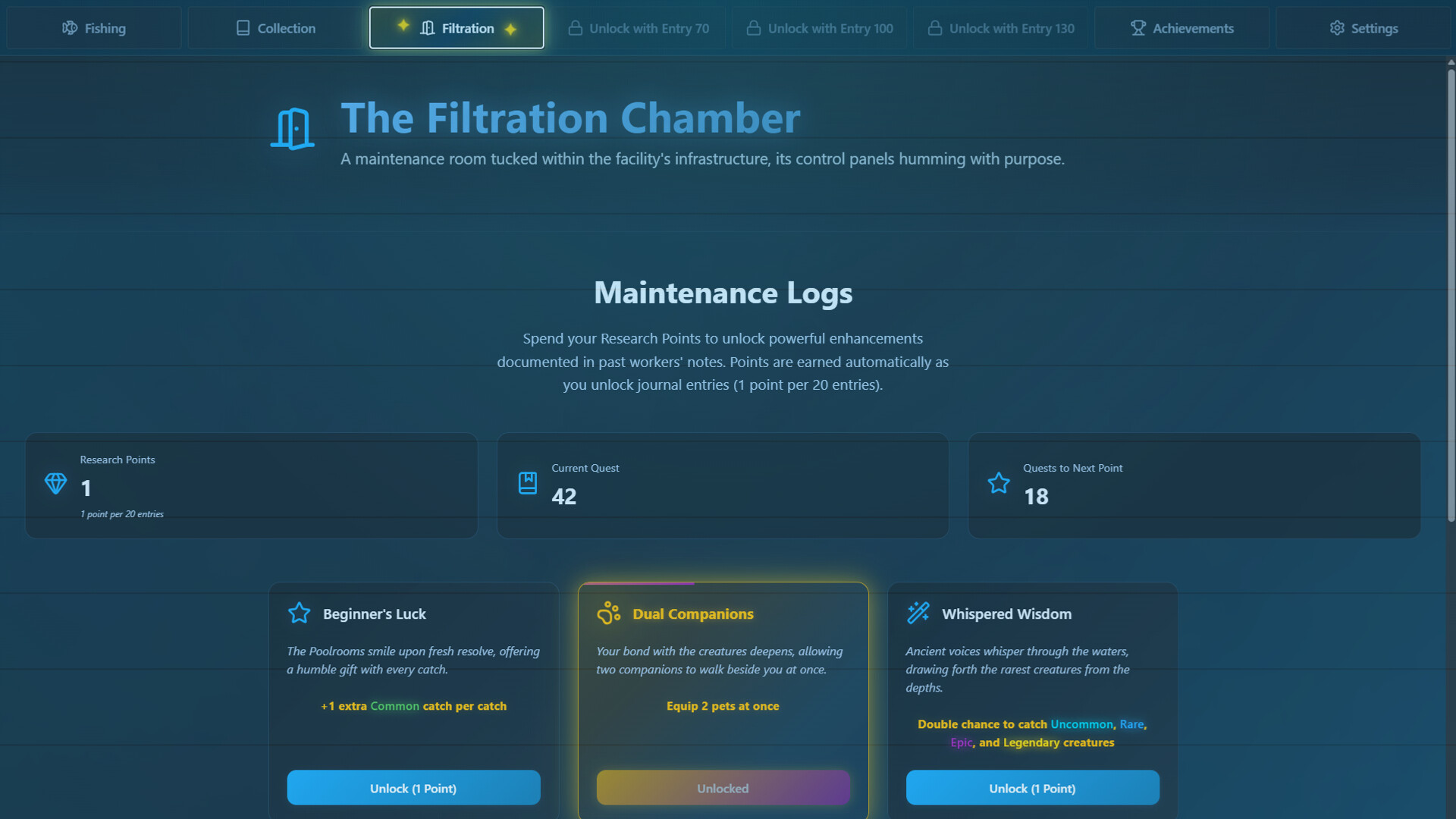 Idle and catch mysterious creatures lurking in the Poolrooms. Upgrade your fishing equipment, research bizarre specimens, and build your collection as you uncover the secrets of the Backrooms. Every catch will bring you closer to understanding this strange realm.