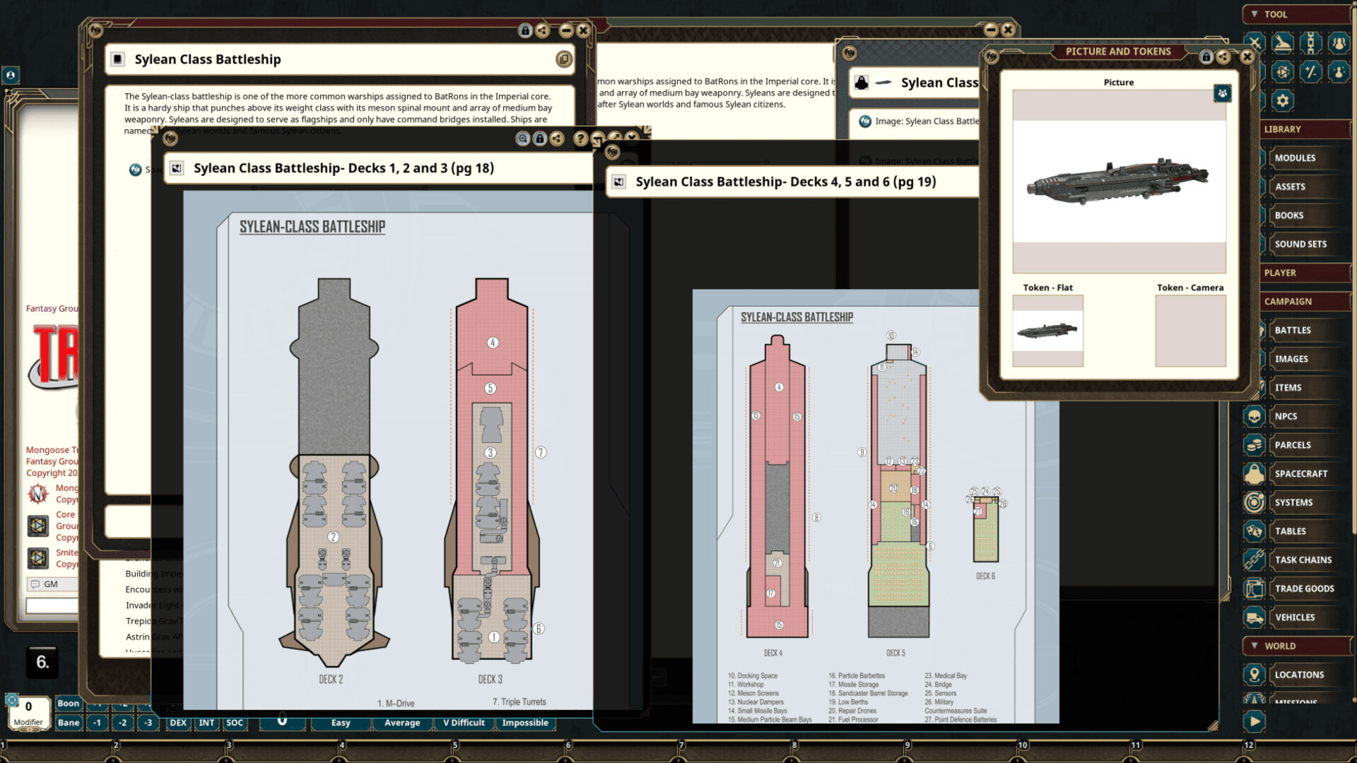 Requires: The free Fantasy Grounds virtual tabletop (VTT) software and a one time purchase of the Traveller 2E (Mongoose) ruleset.