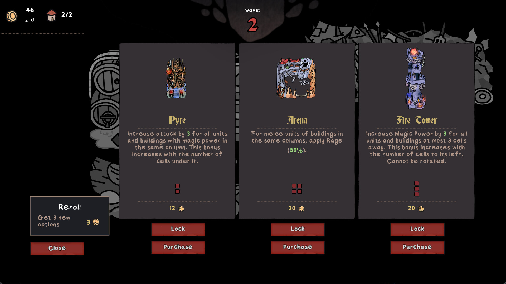 Packed Lair is a base building auto-battler roguelike where you place your buildings like in an inventory to create a powerful army of orcs, goblins and other monsters, then send them to defeat your enemies.