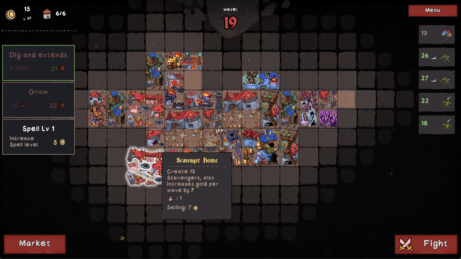 Packed Lair is a base building auto-battler roguelike where you place your buildings like in an inventory to create a powerful army of orcs, goblins and other monsters, then send them to defeat your enemies.