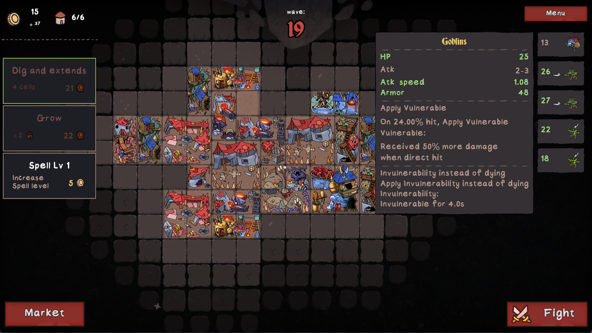 Packed Lair is a base building auto-battler roguelike where you place your buildings like in an inventory to create a powerful army of orcs, goblins and other monsters, then send them to defeat your enemies.
