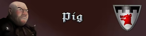Kötü bir baba tarafından aç bırakılan Pig sonunda evden kaçtı ve İngiltere taşrasında bir grup haydudun arasına katıldı. İlk yağmalarda kendini ispatlayan Pig hızlıca bu eşkıyaların liderliğine yükseldi ve her bir çarpışmada en iyi ganimetleri kendine aldı. Kısa sürede aşırı yemeye başladı ve baya şişman birine dönüştü, bu yeni halini de düşmanlarını korkutmada kullandı. Bu karışık geçmişine rağmen Wolf ona bir dükalık sağlamayı başardı ve bu noktadan sonra Pig Wolf’a savaşlarda destek sağlamaya başladı. Bu ikili genelde ekip olarak çalışsa da Pig Wolf'dan babasından korktuğu kadar korkuyor.