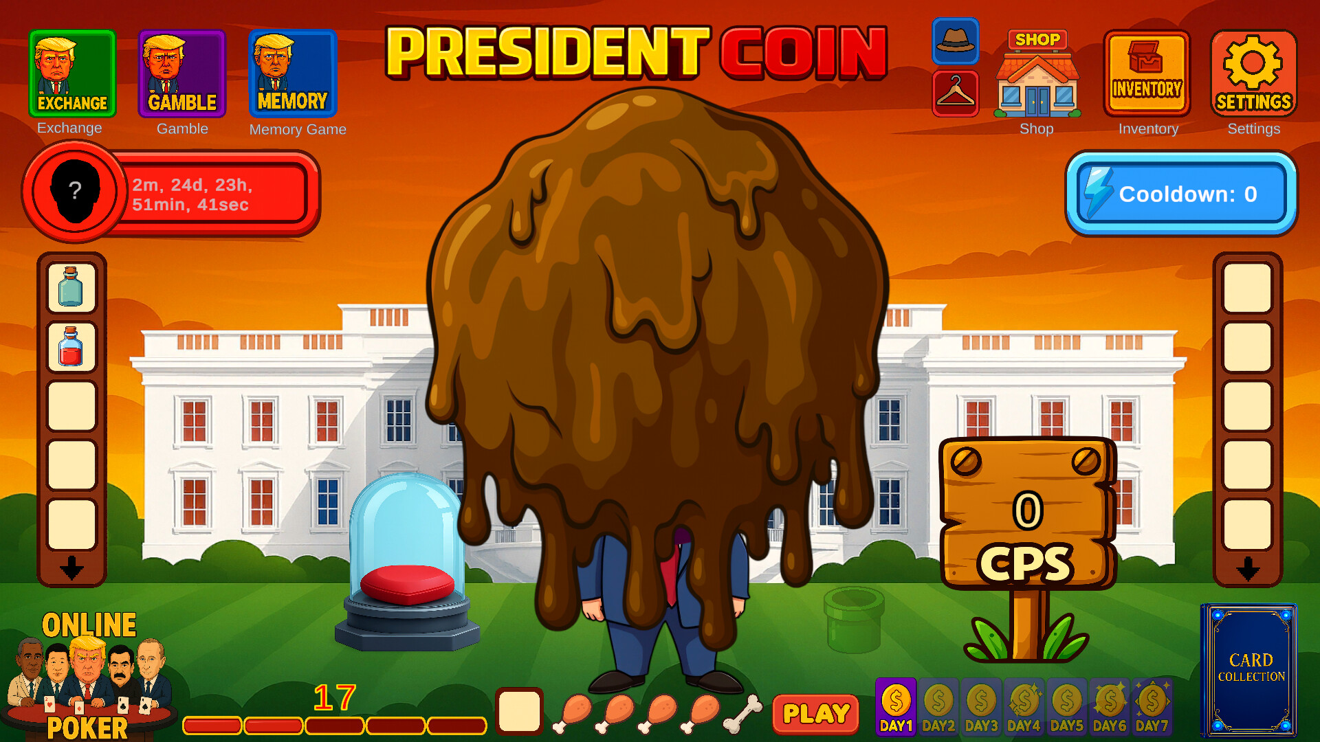 Twój prezydencki PC-pupil. Zbieraj monety! President Coin to gra, w której klikasz na prezydenta! Co 5000 kliknięć otrzymujesz losową monetę. Mają różne rzadkości i można je wymieniać lub ulepszać w grze. Monety są ograniczone, więc zacznij teraz! Zawsze będą pojawiać się nowe gry wymiany.