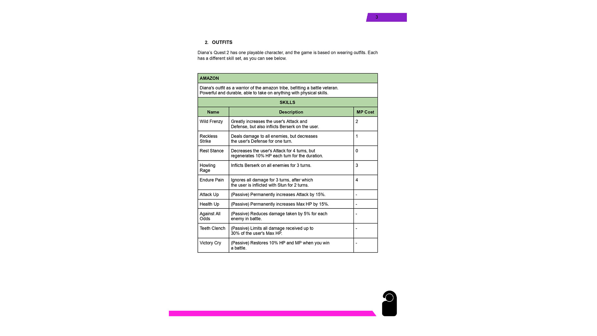Diana's Quest 2: Guide is a walkthrough document with spoilers of an adult game, but it doesn't have graphic images with genitalia, explicit sex, or nudity. It's a guide about the game features, how they work, each spell the protagonist can learn, and the monsters can use against them.