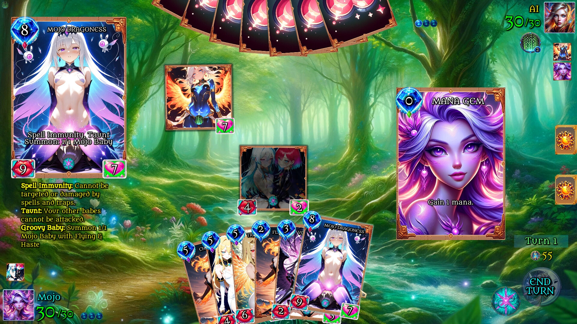 • Defeat Challenging AI Boss Decks: Conquer the Dragon Clan & Succubus Queen. Earn coins, buy card packs, and collect blessed cards.