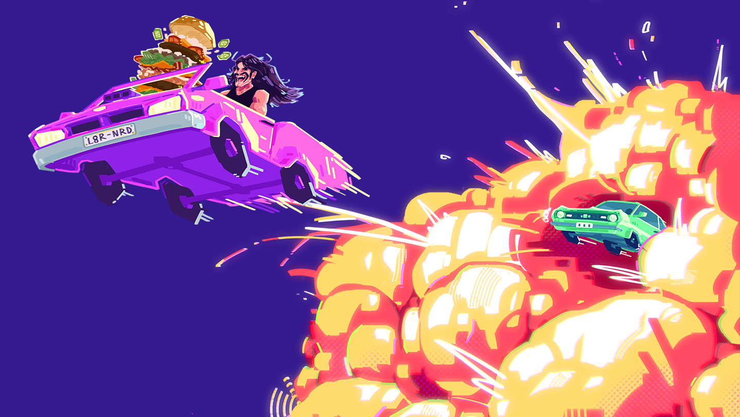 The nefarious Jerkwad pilfered your lunch while you were grabbing napkins and it's up to you to get it back! Bump, jump, dash and crash through him and his minions in this top-down car combat smash-a-thon!