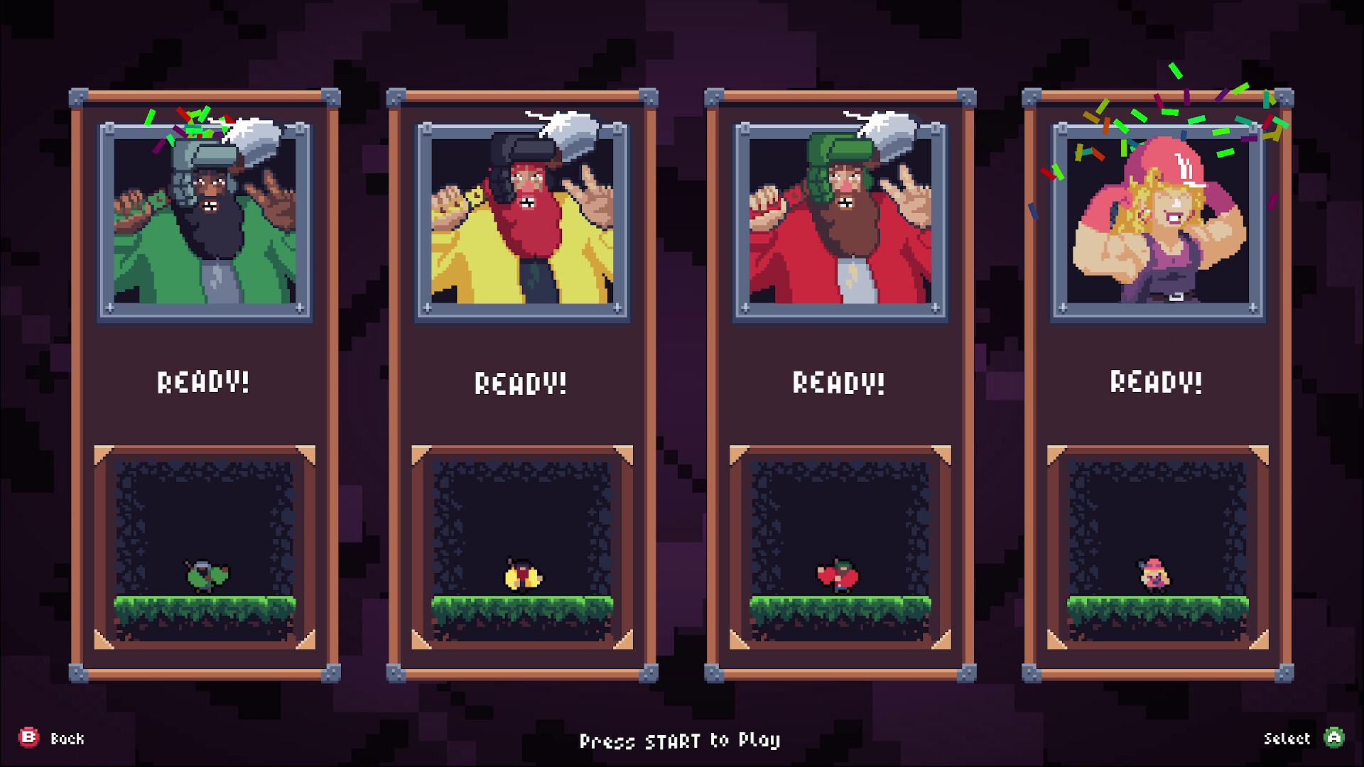 Pick from 2 different characters, each with 4 different pallettes:
