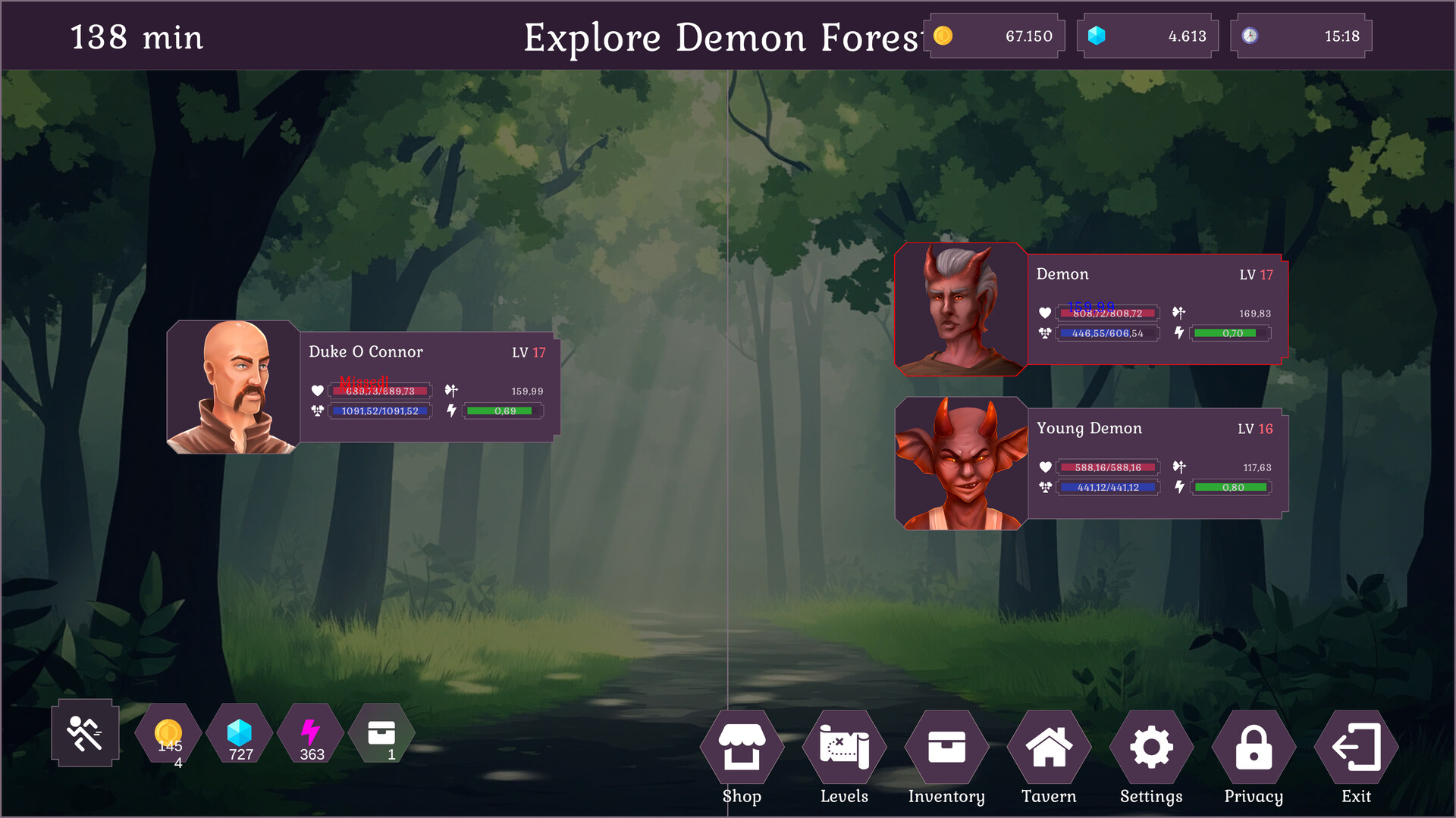 Fight against Demons and Goblins. Equip items to increase you combat power and fight stronger enemies while you increase you level!