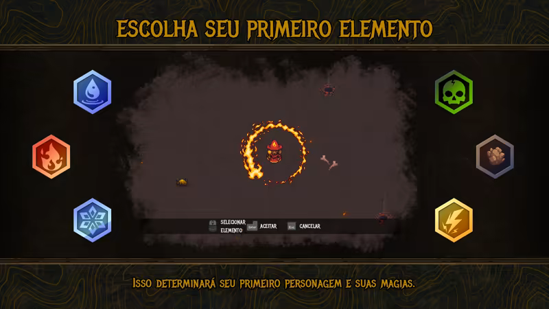 Escolha um elemento inicial entre fogo, água, veneno, elétrico, terra e gelo, que definirá sua trajetória. No entanto, você ainda poderá usar os outros elementos ao desbloqueá-los.