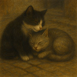 Cats are social animals; having cliques of their own. Having a friend to depend on is nice especially when you're too hungry to move or need a buddy to purr next to you and get you back to full health. Bringing food to your friend is always a nice surprise for them.