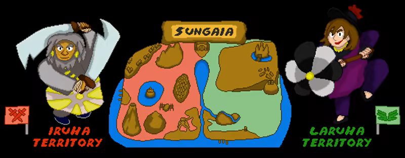 The Laruha Clan occupies East Sungaia, governed by Premier Elemi who defends the land alongside her clan’s best fighters. They promote technology and equality, rejecting old-fashioned thinking and religion.