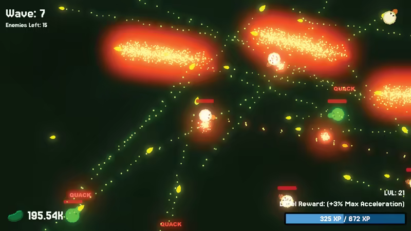 DuckStruck is a fast paced, top down bullet hell pixel art shooter, where you play as... a duck! Battle enemy zombie ducks, and build defences to aid your survival with endless waves of enemies attacking you at every moment!