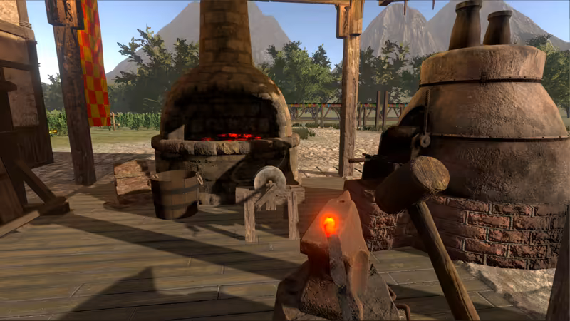 Improve your skills and upgrade your smithy, forging different equipment and weapons to sell or use on your horse.