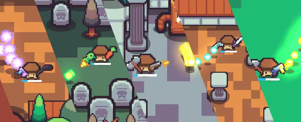 We blended the shooting mechanics of traditional roguelikes such as Enter the Gungeon and Binding of Isaac with a brand new melee system to create a roguelike that put a creative spin on the classic tried-and-true formula! There are more bullets, more enemies, more death, and more fun.