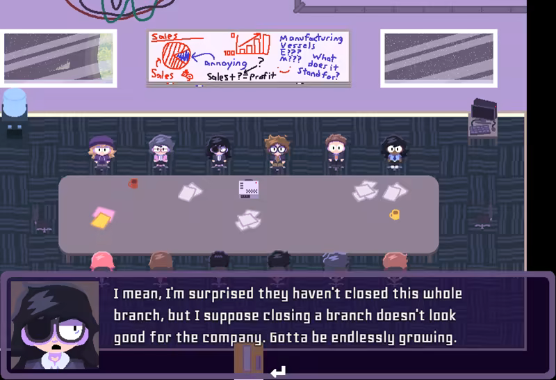Team up with your co-workers to figure out and put a stop to whatever shady practices the company is up to! BACKSPACE has a wonderful little story with a bunch of moments that I, at the very least, find quite funny. I suppose you can be the judge of my comedic abilities.