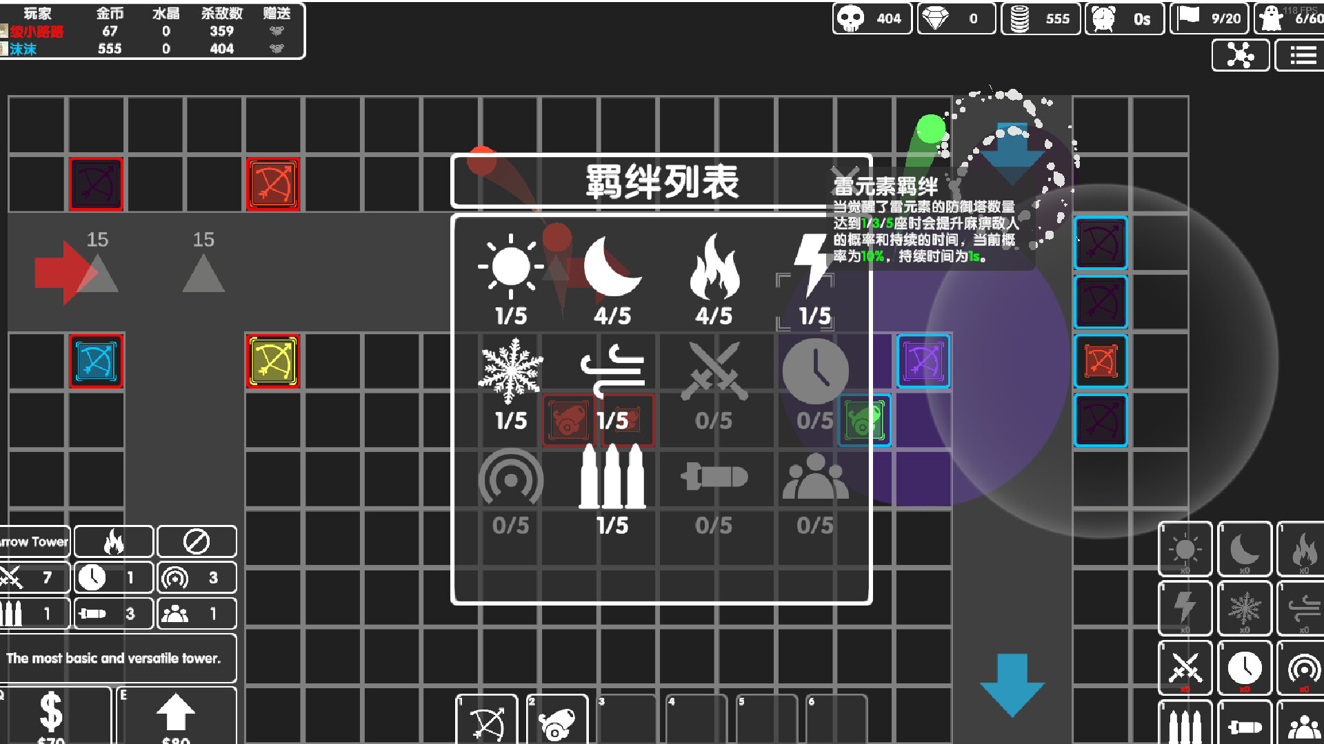 在試玩版中,你可以體驗遊戲內的六種基礎元素(光、暗、火、雷、冰、風)。玩家可自由搭配元素,防禦塔結合不同元素將獲得獨特能力。透過合理的元素組合與特殊的元素羈絆效果,打造更完善且牢不可破的防禦體系。