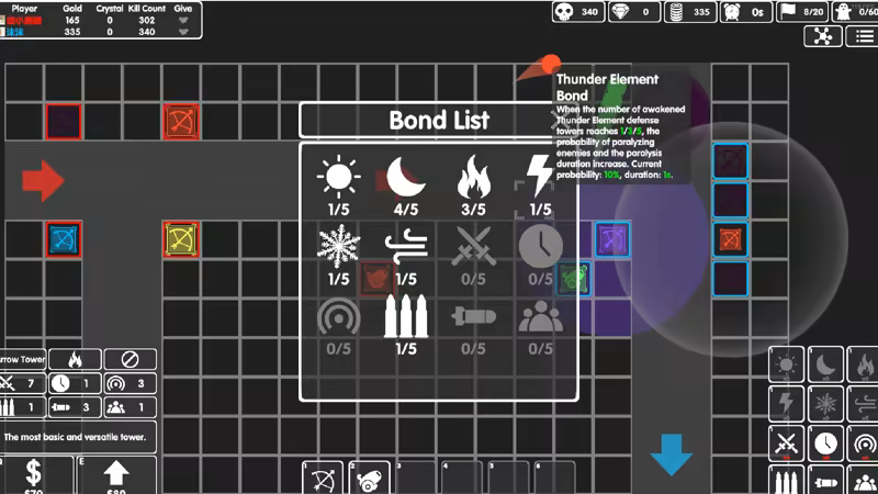 In the demo version, you can experience six basic elements in the game (Light, Dark, Fire, Thunder, Ice, and Wind). Players can freely mix and match elements, and defense towers will gain different abilities based on the elements they combine. By strategically combining elements and utilizing unique elemental synergy effects, you can build an increasingly solid and impenetrable defense system.