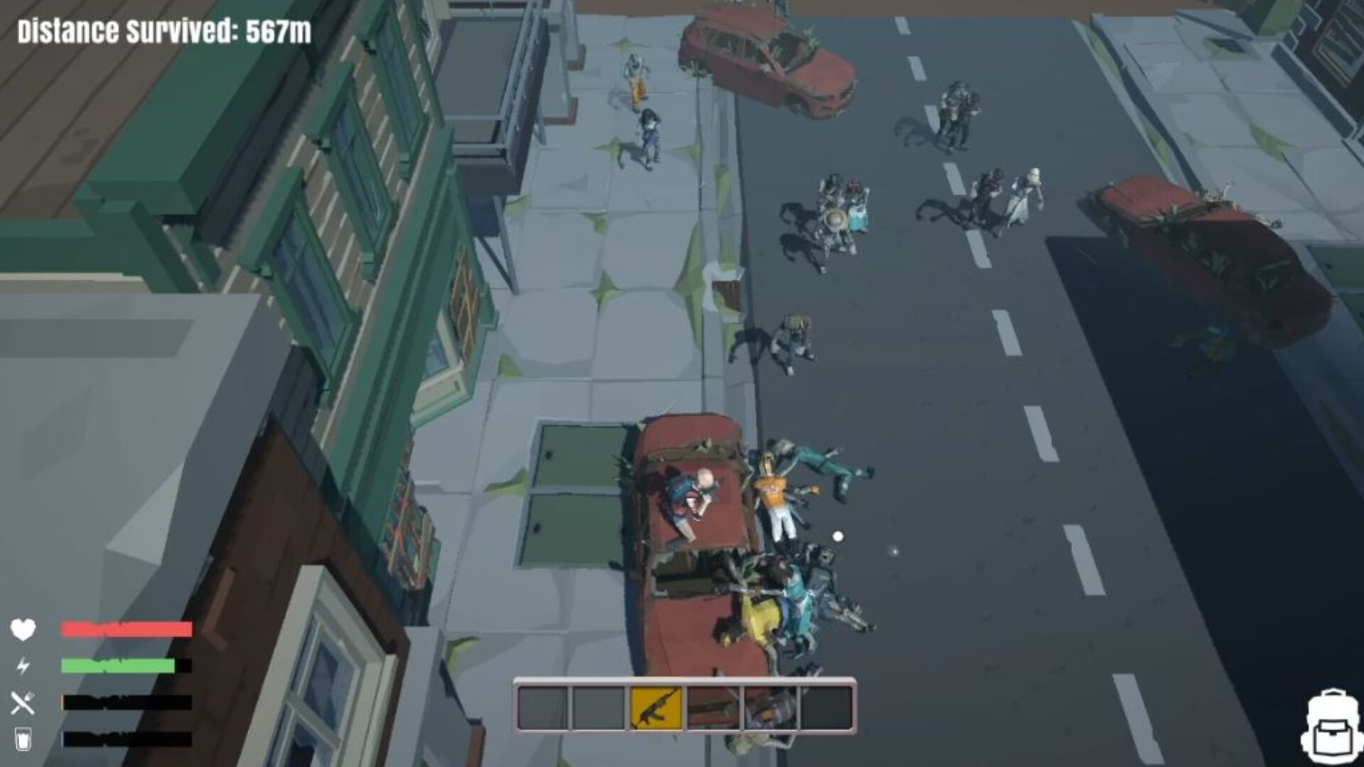 Deaded the runner is an arcade like top-down survival shooter. Fight your way through countless zombies by shooting, slicing and shoving them out of your way to see how far you can survive.