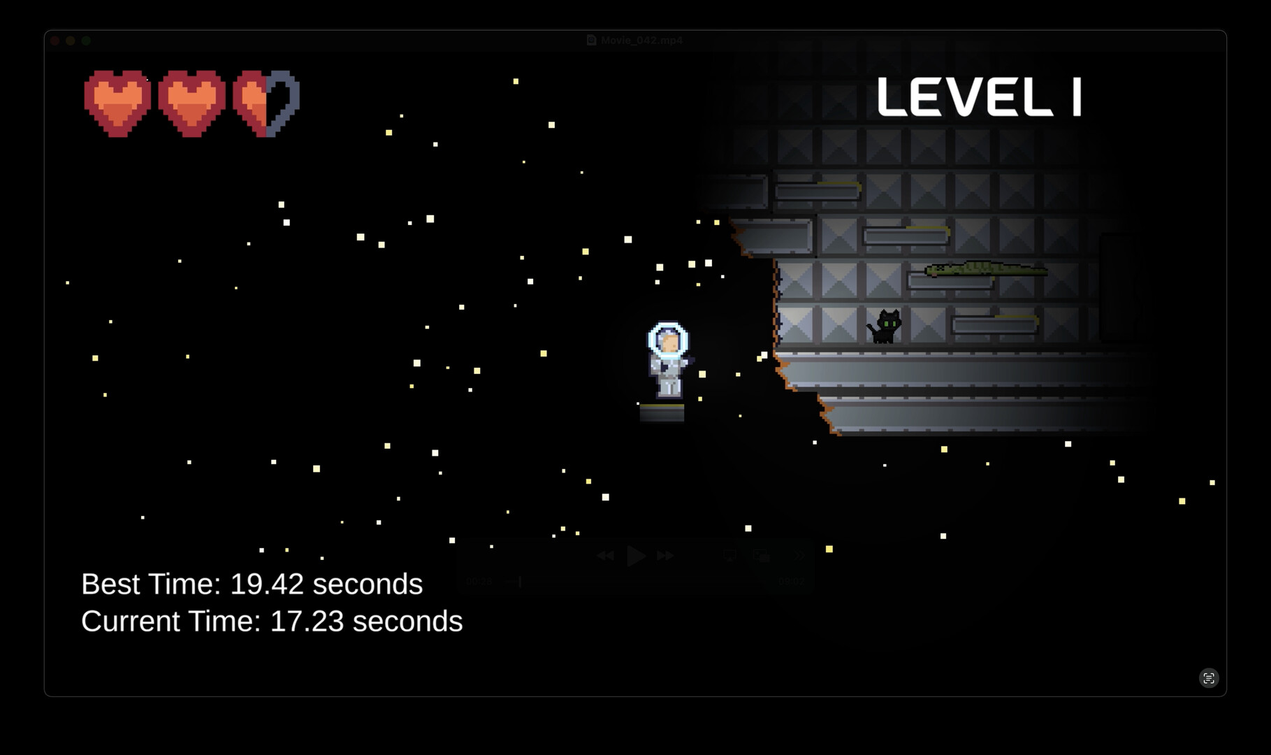 Dino Space Station is a 2D pixel-art platformer. Restore power, evade dinosaurs, and escape the wreckage! The demo features three (3) levels from the full game, each with normal and hard modes—and a cat to rescue. Compete for the fastest completion times!
