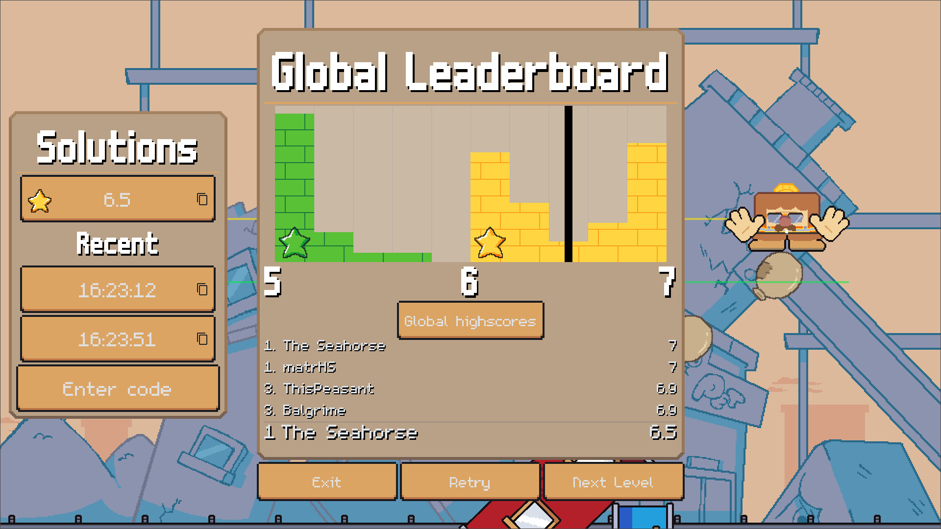 After each level you will be able to compare your score with all who beat the level before you, can you get the top score?