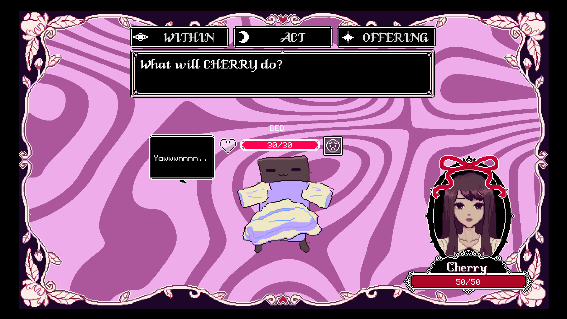 Based on what you choose in Cherry's inner world, the world around you will reflect the energy of your choice. Just like in the battle system, there are 3 main endings designed, with sub-endings.