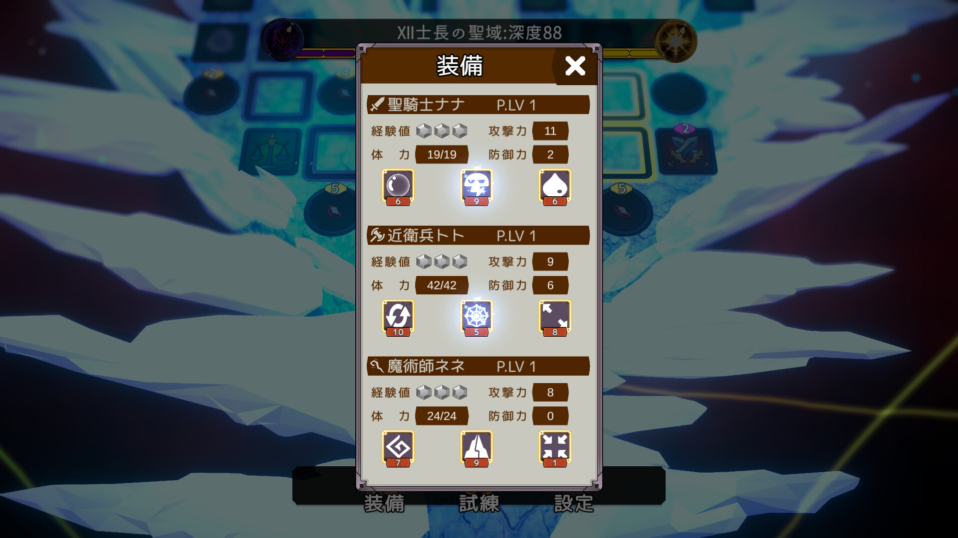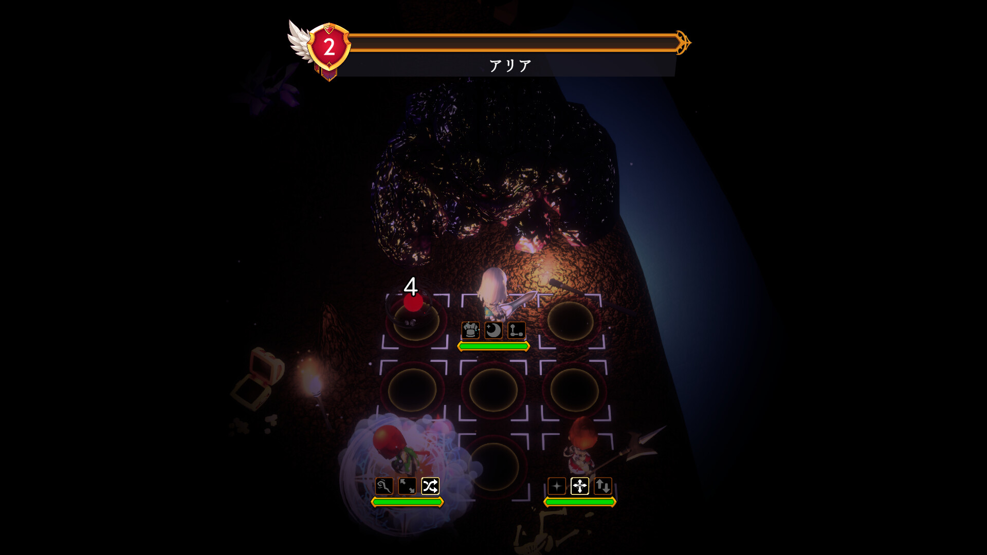 • ダンジョン進行では、ダンジョン内に配置されたカードを進めることで、主人公達の体調が変化します。 変化に応じて、今まで行くことができなかった場所に行けるようになったり、超整腸状態という戦闘を行うことなく敵を討伐できる特殊な状態になる等、ダンジョンの進め方次第であなたの命運が左右されます。