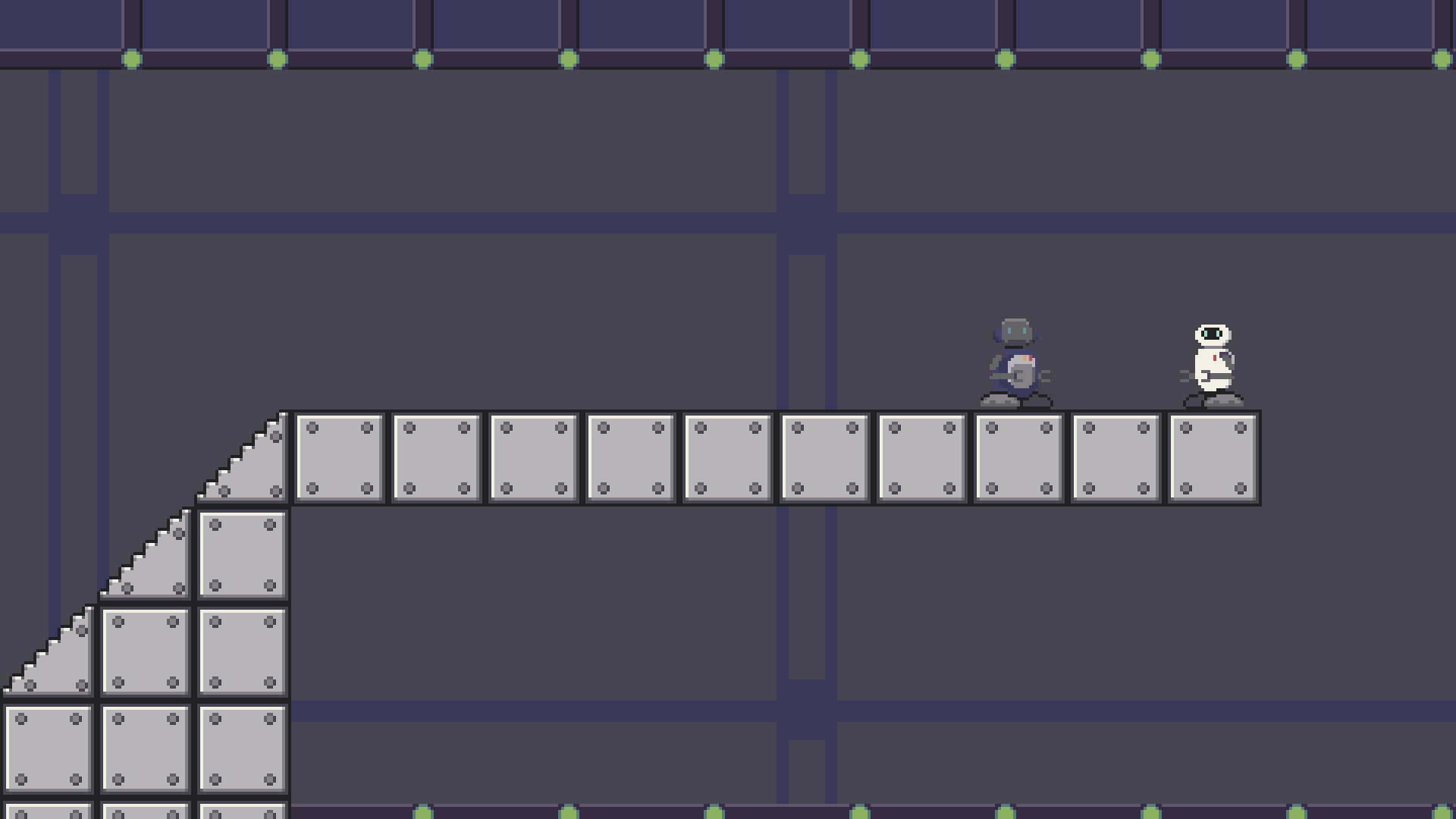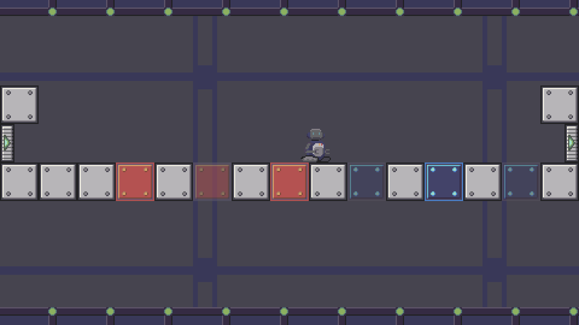 "Path To You" is a puzzle-action game where a malfunctioning robot awakens moments before being scrapped, drawn by a mysterious call. The robot moves autonomously but can't change direction. Players must guide it using red and blue hacking controls to manipulate obstacles and enemies.