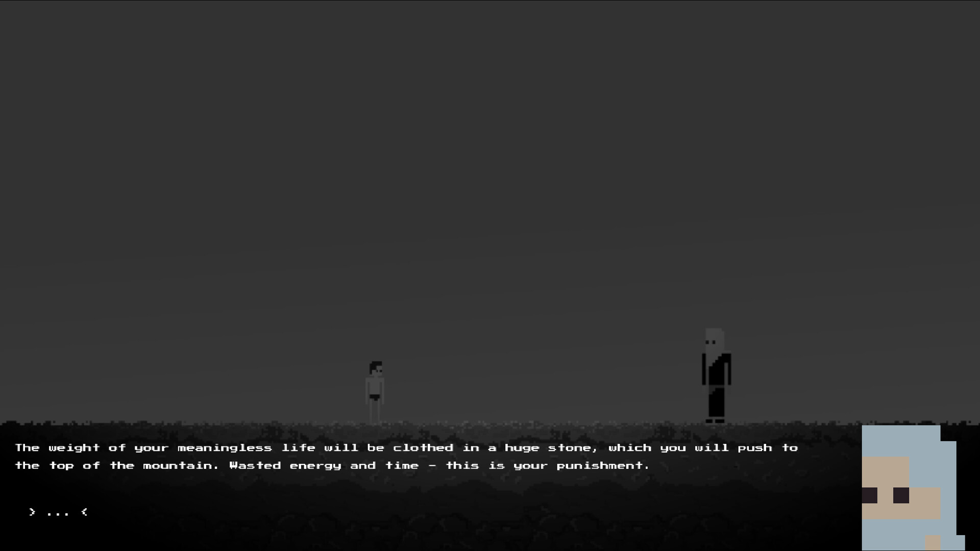 Your journey began with a death – not a noble farewell, but a grim and unremarkable departure. However, death was only the beginning. Cursed to eternal, endless suffering, you find yourself trapped in a world designed either to enlighten or to torment. The true purpose of your burden has never been revealed. You are condemned to an endless cycle where suffering is constant, and the weight of this immense stone is your inescapable fate.