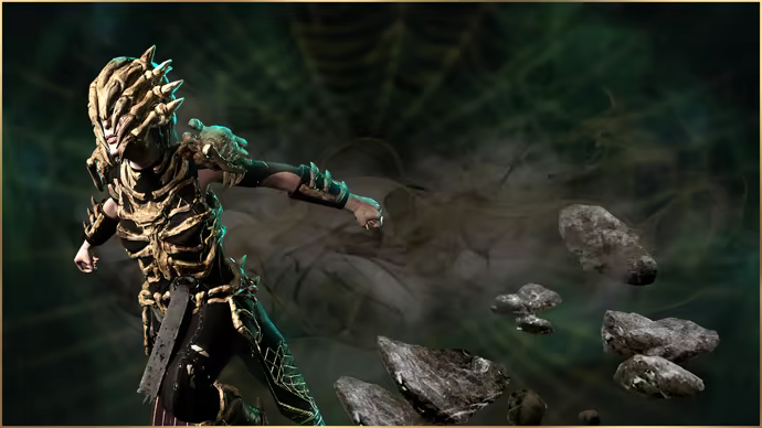 撼动你脚下大地。这款地震闪避特效会在你身后留下破碎的地面和升起的岩石,这是对你坚不可摧力量的证明。