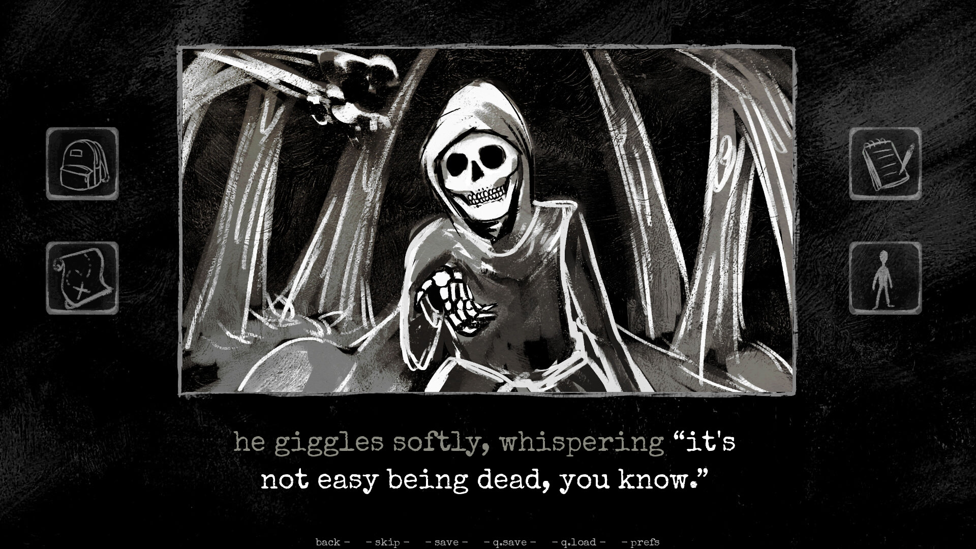 this is a boundary-pushing visual novel where every choice is heavy and every character is a psychological puzzle. though they wear the face of skeletons, the souls you meet are more human than you can imagine, with real histories, real traumas, real anxieties, and maybe even a reflection of yourself. the conversations are so authentic because they are based on real ones. you are, in a way, speaking with real people.