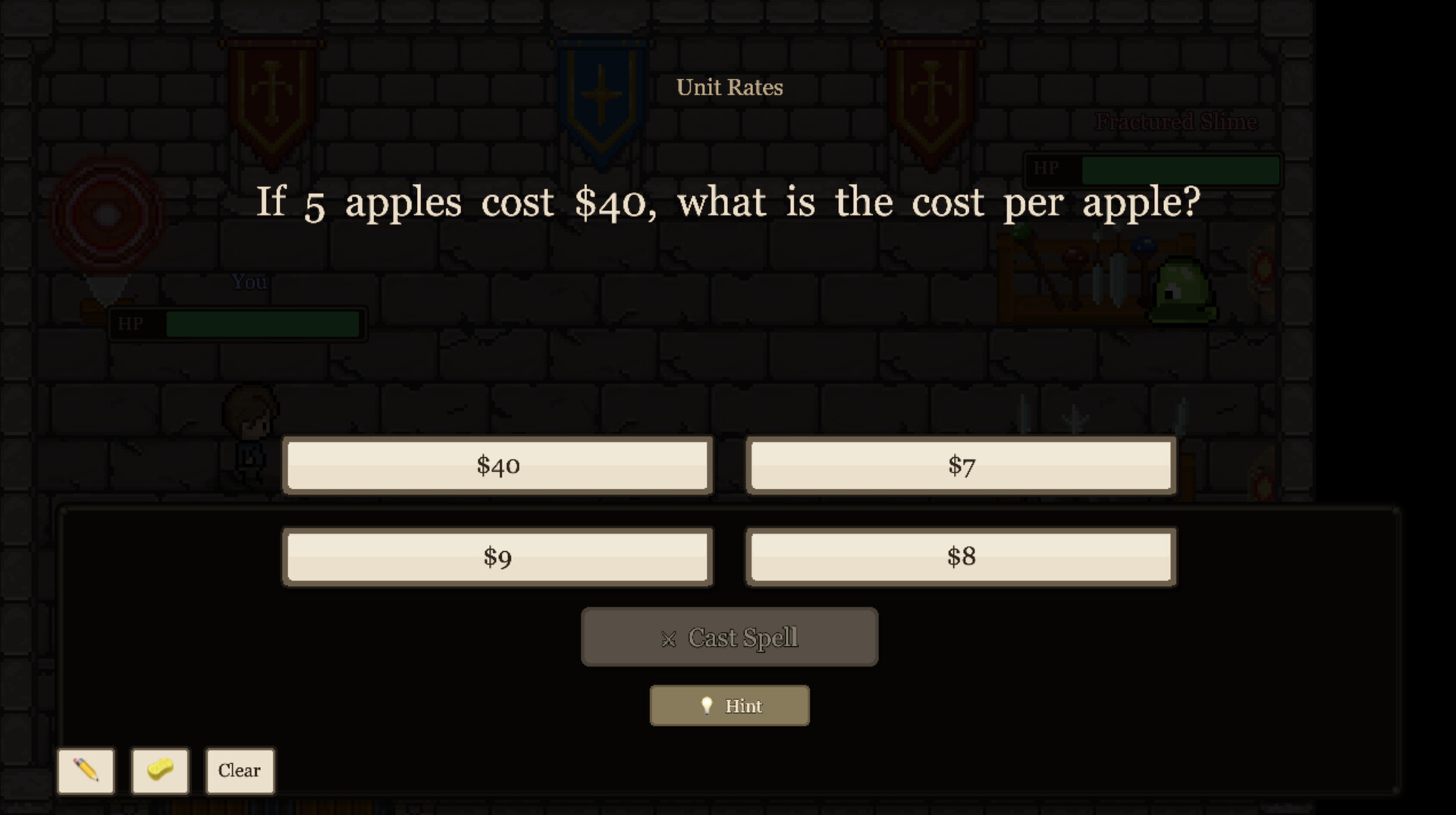 A retro-style math RPG where middle schoolers battle monsters by solving math problems. Explore an epic story, level up your character, and master math. Used by 800+ students and teachers.