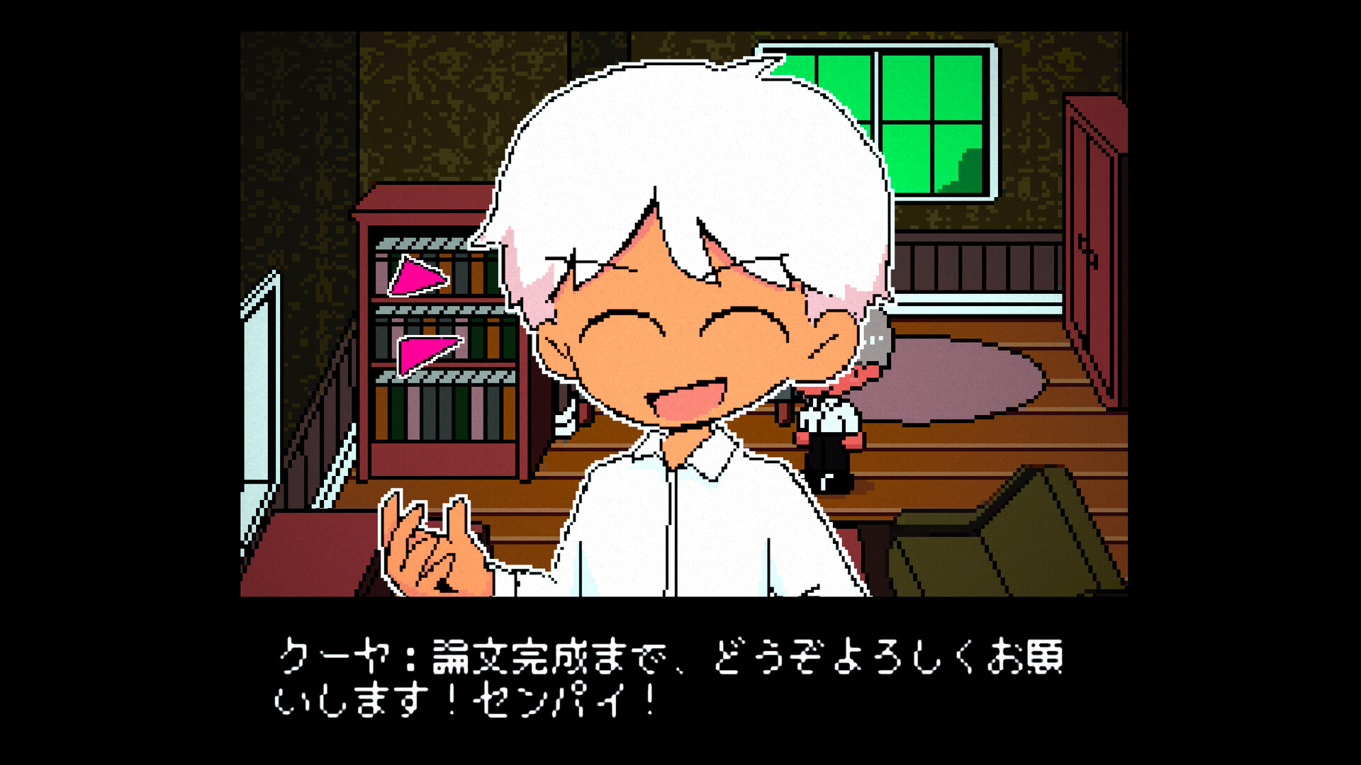 『PLEASE KNOCK: The Sloppy Researcher's Life』は、 先輩と後輩がちょっと変わった研究生活を過ごす日常観察型アドベンチャーRPGゲームです。