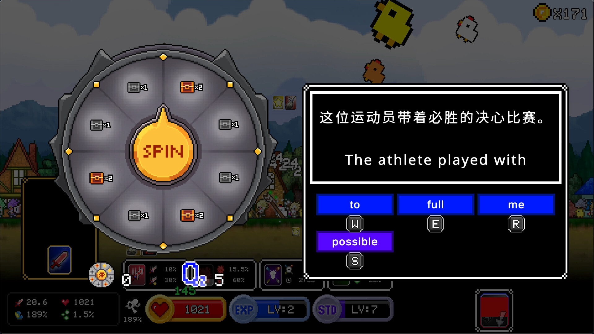 通过解答🧠英语测验来减少冷却时间并获得增益,击败强大的怪物!
