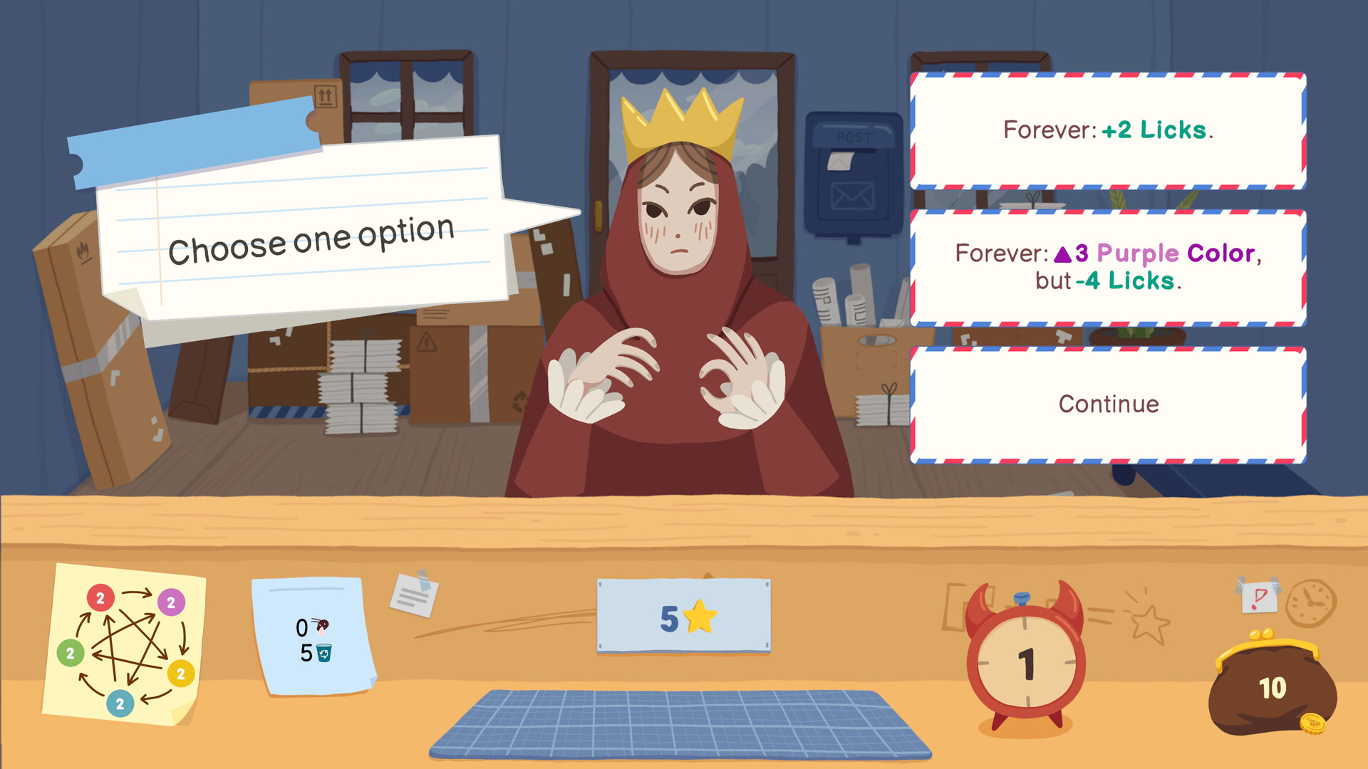 Before each run, you choose which stamps to bring on your shift.