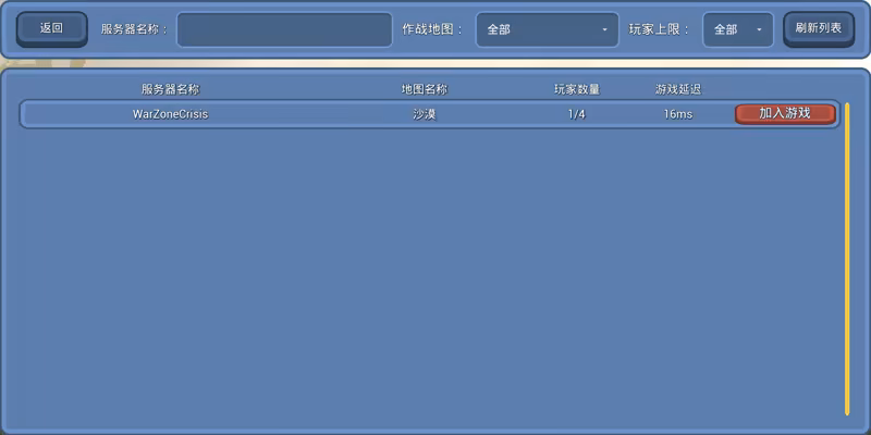 战区危机是一款支持2-32人在线对战的第三人称射击游戏,玩家可通过Steam平台创建房间并加入游戏。游戏采用红蓝两队对战模式,玩家可以在地图中拾取枪械、子弹和增益道具来提升自己的战斗能力,包括生命、护盾、移动速度和跳跃能力等属性。每局游戏时长约为半小时,最终根据击败对手的数量判定胜负,累计战术积分更高的阵营获胜。游戏注重策略与技巧,带给玩家紧张刺激的竞技体验。