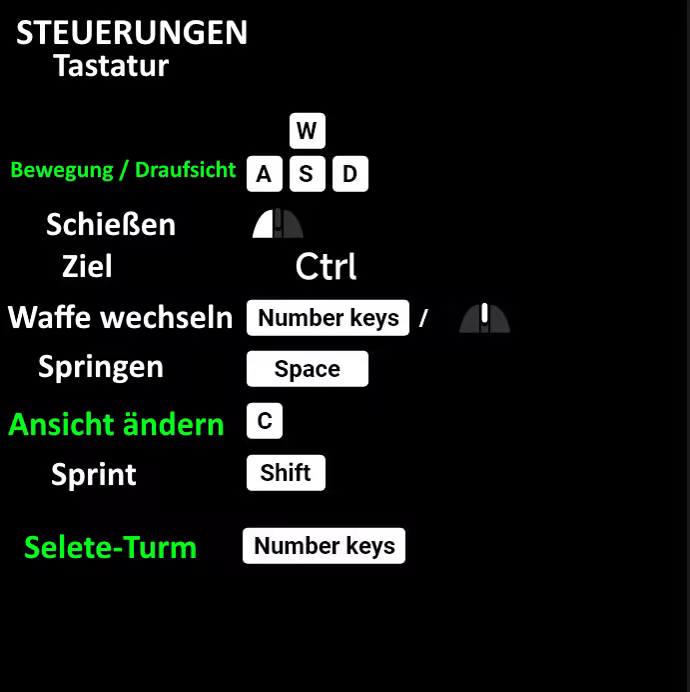 Verwenden Sie die Tasten 1, 2, 3 auf dem Ziffernblock, um Verteidigungstürme schnell auszuwählen, und W, A, S, D, um sich zu bewegen. Sowohl die Charakter- als auch die Draufsichtperspektive ermöglichen Bewegung.