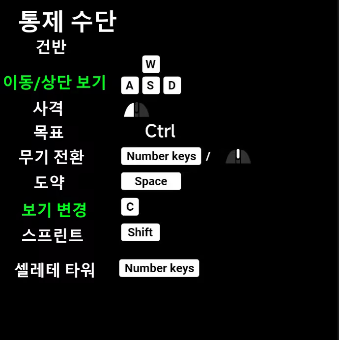 숫자패드의 1, 2, 3 키를 사용하여 방어 탑을 빠르게 선택하고, W, A, S, D 키를 사용하여 이동하세요. 캐릭터 시점과 위에서 내려다보는 시점 모두 이동이 가능합니다.