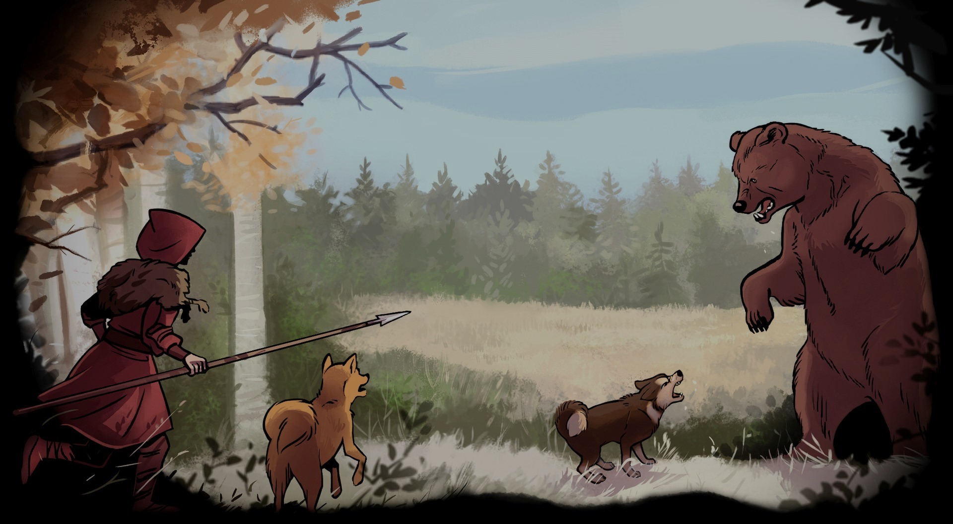 A wide world with vast forests, mires and mountains to roam and watercourses to row is randomly and procedurally generated - and you can live off the land and explore it on very detailed level. Track animals, set traps, hunt with bows and spears, tan hides, go fishing, pick berries, cook food, sleep in a temporary shelter or build a log cottage, trade with the villagers, craft items, interact with cultures near and far -- and so much more.
