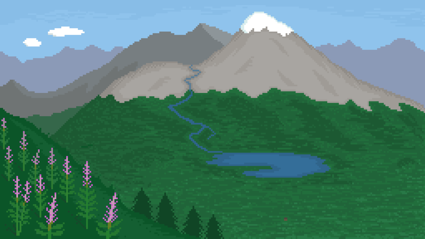 Test your survival ingenuity in four unique biomes—Woodland, Woodland Lake, Alpine Tundra, & Mountain—, all while imbibing charming pixel art, chill music, and thought-provoking quotes along the way.