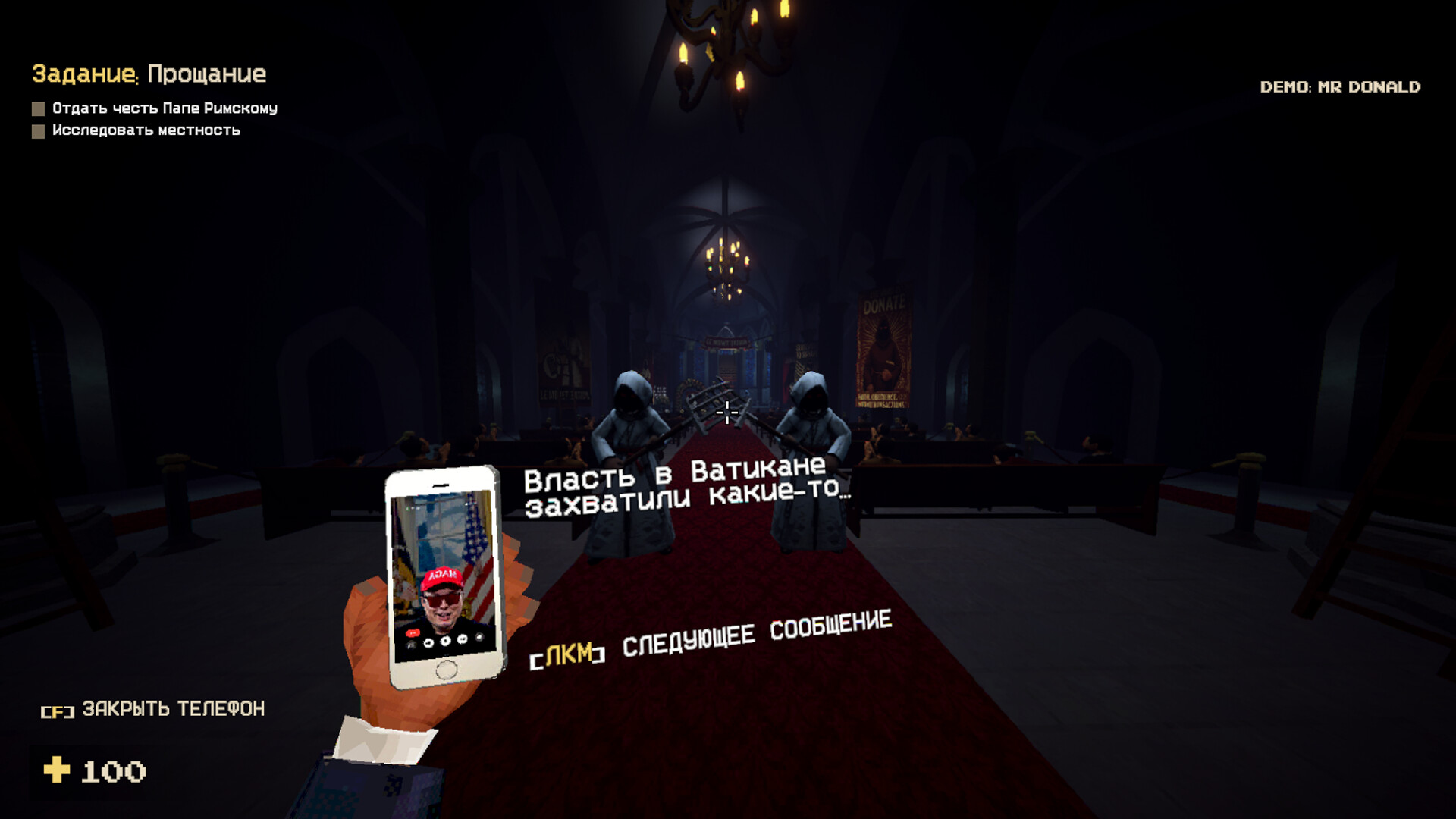 You are MR DONALD — a leader who never gives up. The last hope of America and the entire game industry. Together with Elon, your advisor and coordinator, you must do the impossible: take the Papal throne to save the gamers.