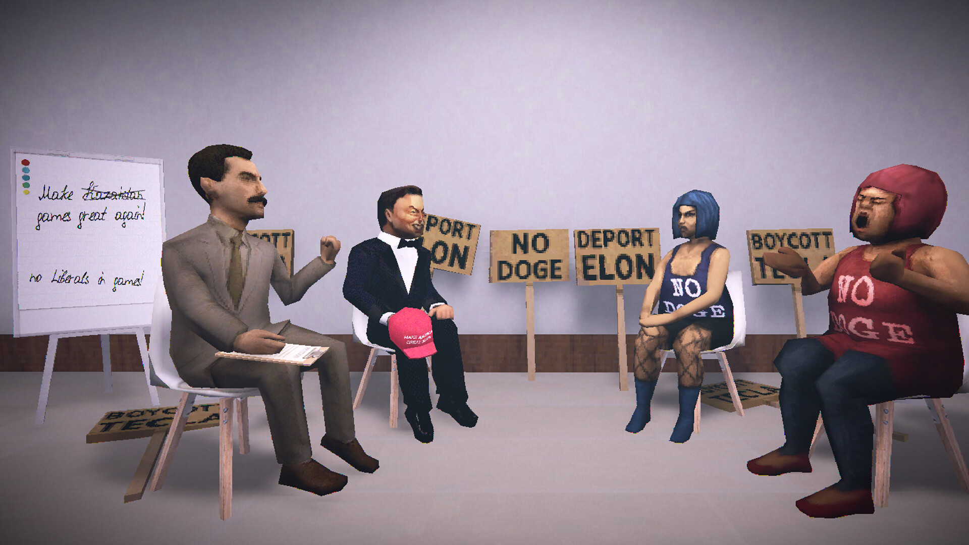 You are MR DONALD — a leader who never quits. Elon, your trusted partner, is always by your side. The world is falling apart. The game industry is on its last breath. It all starts in the Vatican where something went horribly wrong. From there begins your mission to save gamers… and the world itself.