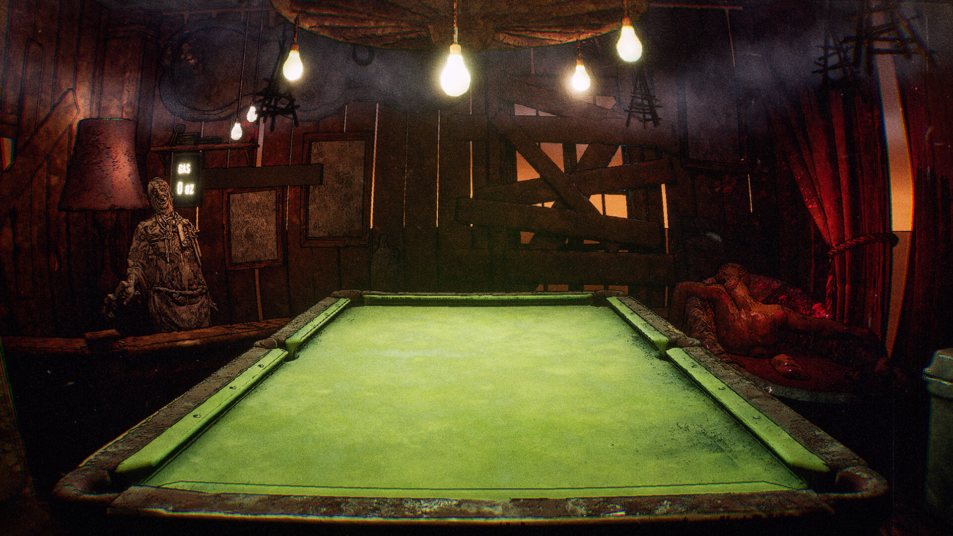 • Use tools, weapons, and environmental interactions to bend the rules of pool in your favor.