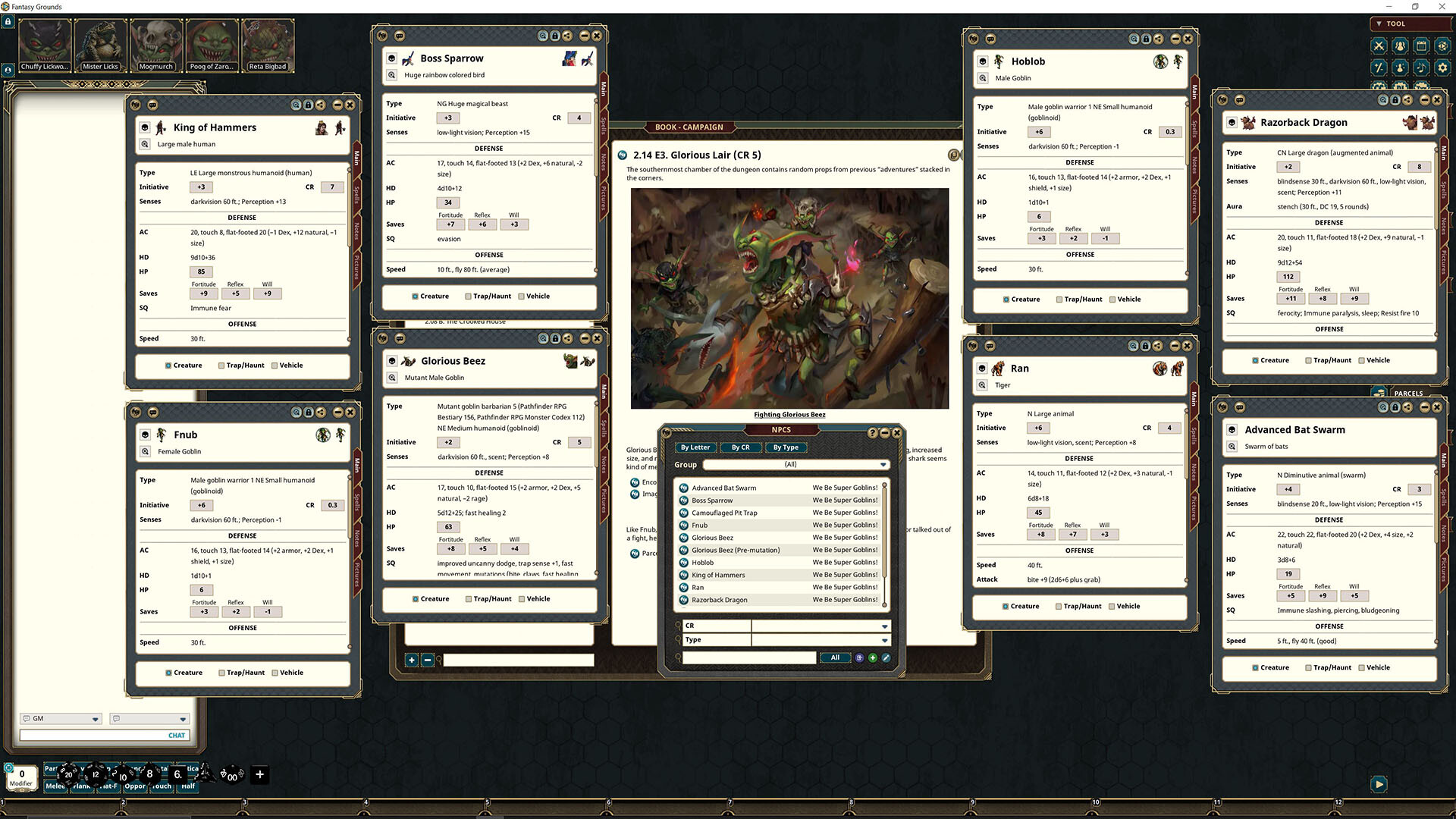 • Tokens for each encounter are all pre-placed in starting locations on the map. You can edit these on the fly.