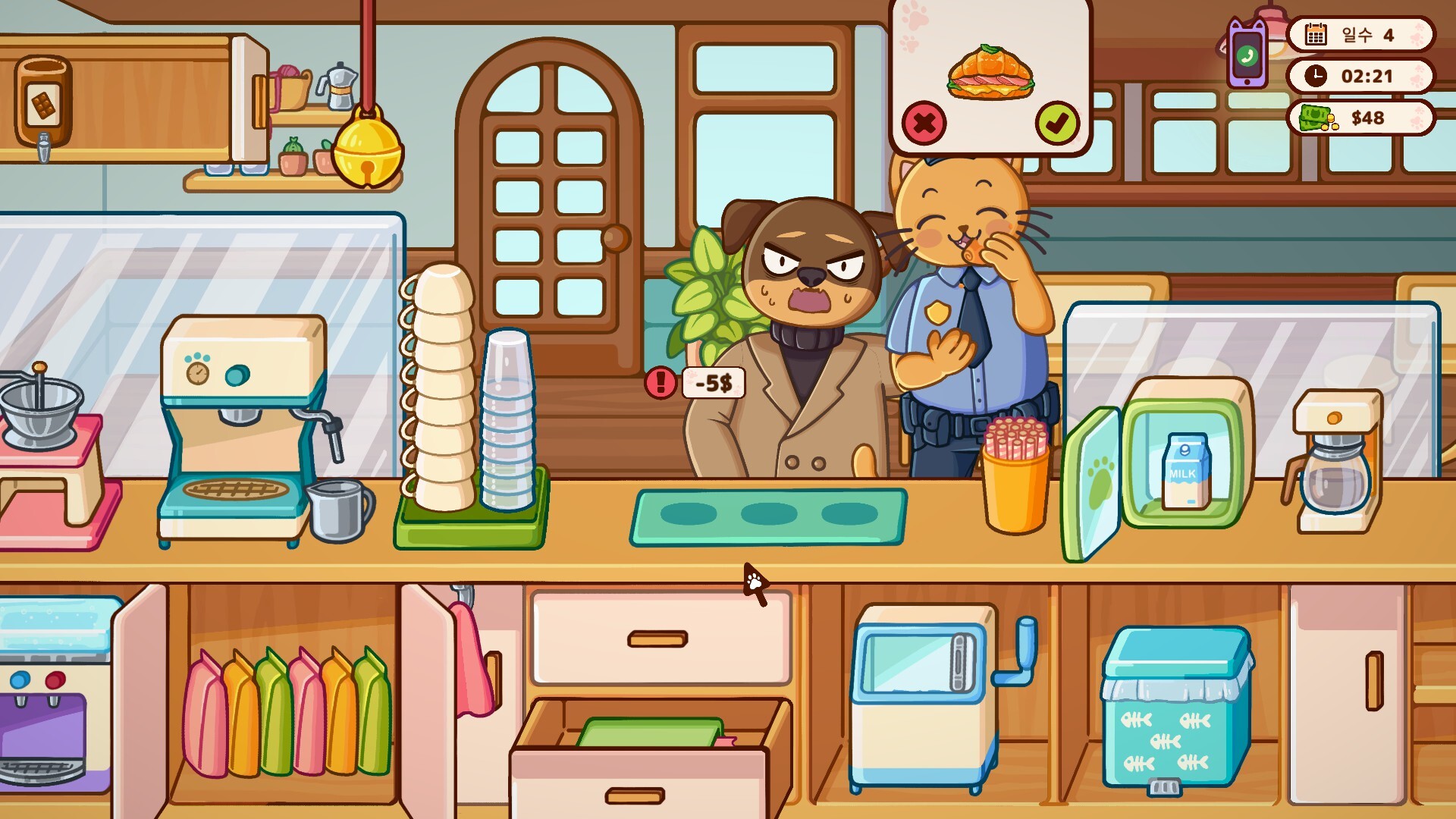 영업 준비 되셨나요? 앞치마를 두르고, 에스프레소 머신을 예열하고, 재료를 준비한 후, 사랑스러운 고양이 손님들을 맞이하세요. 디저트, 음료, 고양이들과의 따뜻한 우정이 기다리고 있는 "Cats&Cups"에서 여유로운 시간을 보내세요!